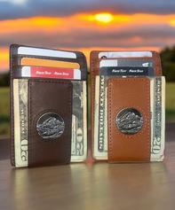 A wallet that is slim, high quality and unique. Made from Nappa Leather with a removable icon that creates a unique aesthetic that allows for endless personalization. RFID protected. Pop up, wristlet and collegiate collections